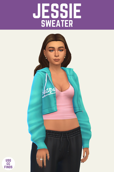 The sweater is a cute cropped zip-up with a tank underneath. There’s a separated file so you can change the colour of the tank top to whatever you want!