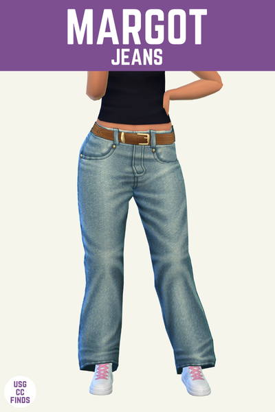 The Margot jeans are a great pair of wide leg jeans for your sims. This pair of denim has a great relax fit and have versions with and without belts so you have options.