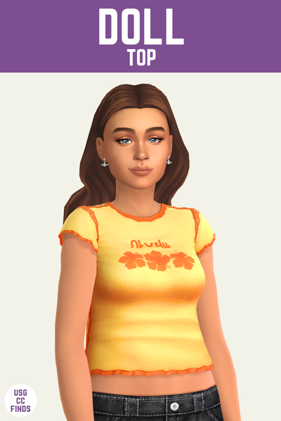The doll top may quite possibly be the perfect t-shirt for teens in my game. It comes in solid colours but the best ones are really great patterned swatches because they’re so fun and unique.