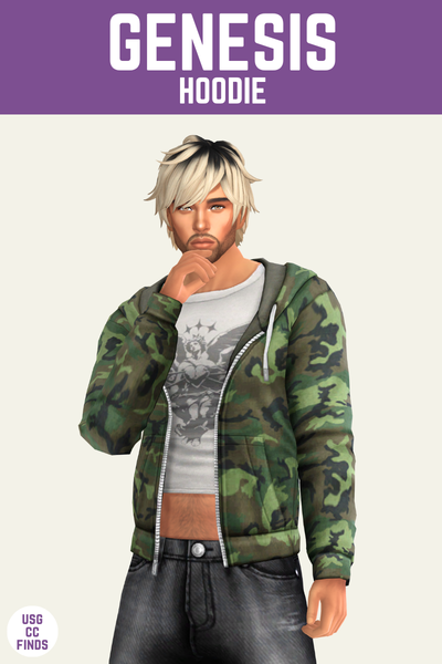 My sims are usually in comfortable clothing working some random hobby job at home, and the genesis hoodie is a really great option for that. There are four versions on this sweater so that’s wild. You can get both graphic designs and solid colours and they both have versions with fur on the hood!