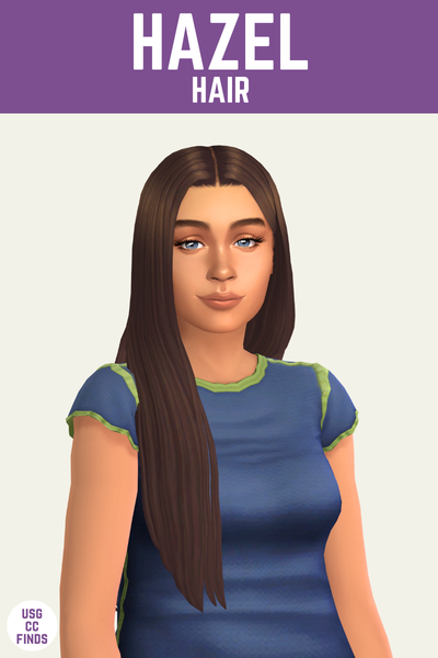 The Hazel hair is a really simple hair that is so effective. This has a middle part and a shiny look to it, like this sim is the type of person who has a 10 step hair care routine for sure.