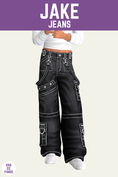 Jake are a fun pair of jeans that I really love for making really cool sims. These are pretty much a cargo pant with straps and pockets all over, but they come in all the best denim colours!