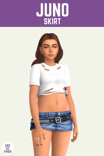 Juno is a fun option for a short denim skirt and it has so much going for it. Ias a little rip on the one hip which adds a lot and there are two versions. One version has a fun studded belt and the other is just plain so you can have options which is my favourite thing to have!