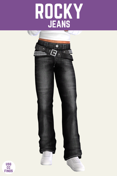 The Rocky Jeans are a simple pair of pants with a straight leg look. These jeans come in two versions with great swatches. The first version is just plain but the second version has two belts that are criss-crossed in the centre for a really unique look.