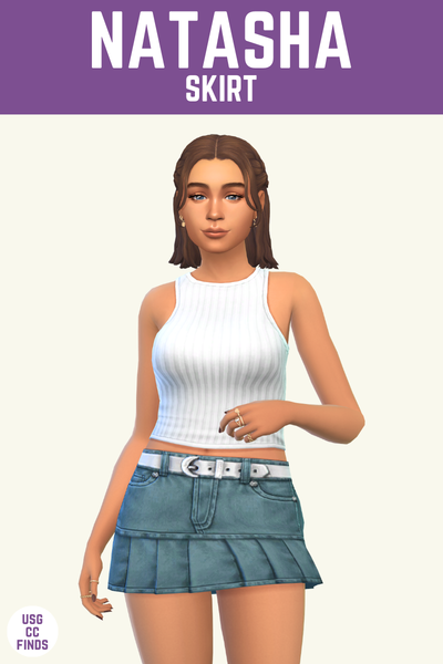 Natasha is a pretty great denim skirt for your sims. It has a nice little belt at the top and a fun stitch line that splits it into pleats at the bottom. The pleats are so gorgeous!