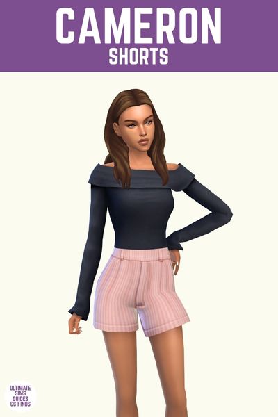 The Cameron shorts are a pair of high-waisted shorts that feel grown up and look super cute on your sims. They come in solid colours, patterns and ribbed swatches too.
