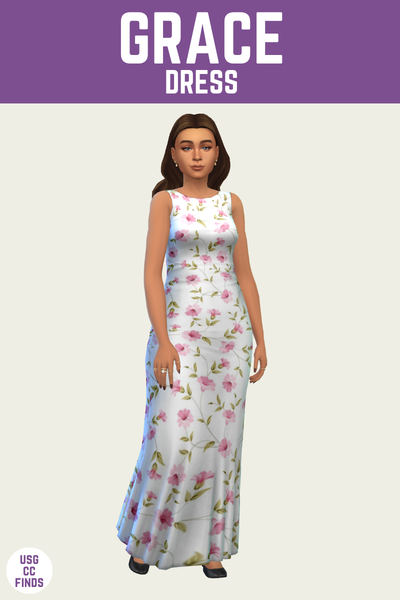 This might quite possibly be my new favourite formal style dress for my sims. It has a high-neckline and no sleeves and is so beautiful. My favourite swatch is definitely the white with large florals!