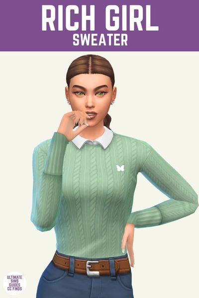 This is the first item I ever saw from this set and it’s so cute. It’s a cable knit sweater with a collar popping out the top and makes the sim look wealthy.