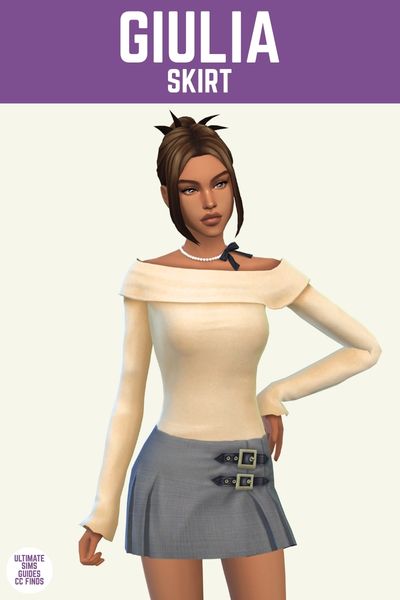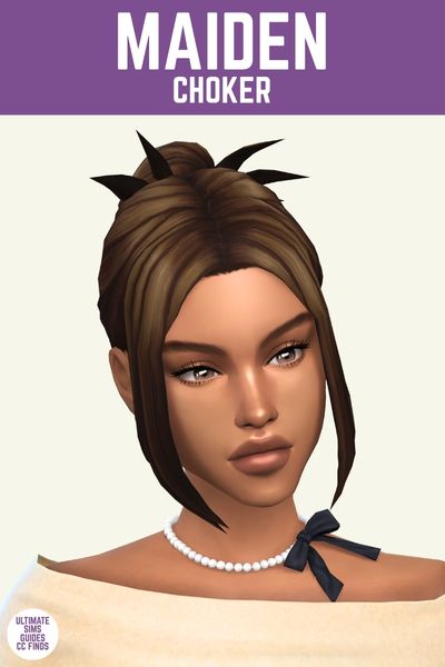 This choker necklace is so gorgeous and feminine. It has a string of pearls around your sim’s neck and a little bow coming off the side. It looks SO good with the Sasha top in this set!