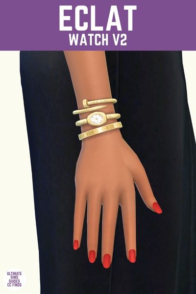 The second bracelet in this set is modelled after the also iconic Cartier Love bracelet. This bracelet has little circles on it that look like the top of a flat head screw, I’ll personally never understand why someone would pay so much for something so boring but it’s fun to have it in The Sims!