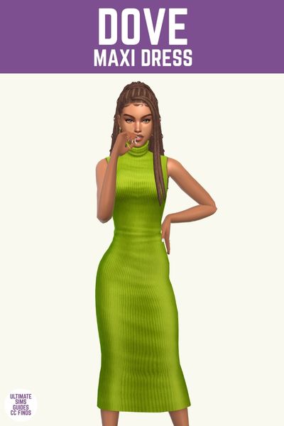 This dress is my favourite of the dove options because a dress like this makes your sim look so good. The high neckline gives a sense of glamour to the look and there are so many good colours to choose from.