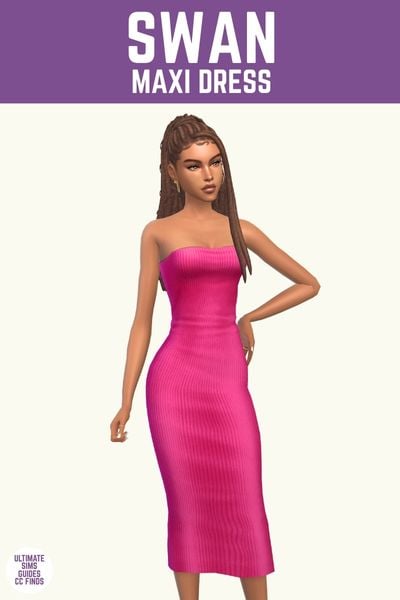 The final part of the swan set is the maxi dress which is strapless like the rest and goes down to mid-calf. I really like this for a more casual option and it works super well in the summer months for my sims.