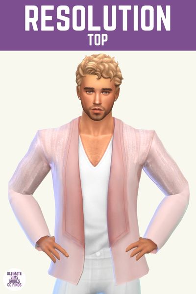 The resolution top is a fun look for a party for your sims. Like imagine your sim wearing this on New Years? It’s perfect. It has a shiny texture and a V-neck t-shirt underneath which looks really great.
