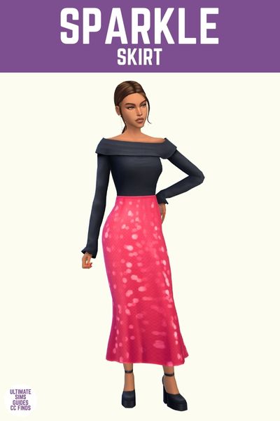 Sparkle is a high-waisted long skirt that’s covered in sparkles, of course! It has a really fun sparkle texture with large and small sparkles and works so well for fun parties.