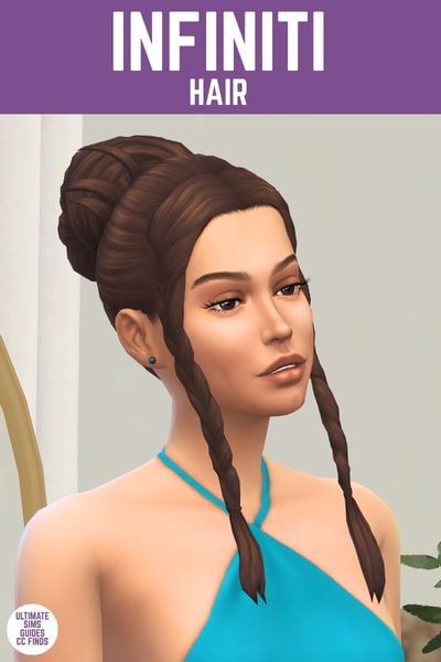 This hair is an up-do hairstyle for your sims with an interesting face framing set of bangs. Infiniti looks really good with a more formal look if you add some fabulous earrings.