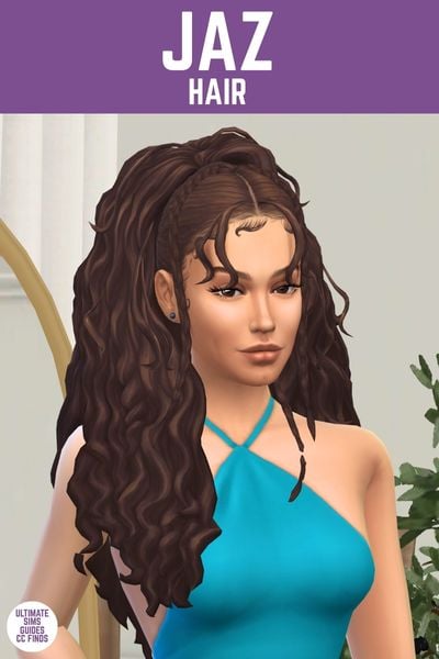 The Jaz hair is so fun with so much going on. It has a lot of curly hair, some braids and fun bangs that help to frame the face.