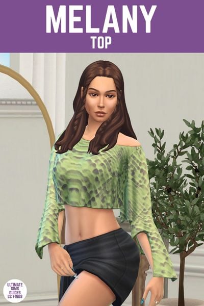 The Melany top is a long sleeve top for your sims with an off the shoulder look. It comes in gorgeous solid colours but also great patterns. The sleeves on this are so interesting with a staggered look.