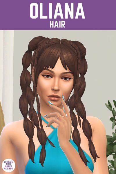 Oliana is a fun bubble braid style hair with pig tails. To make the hair more unique we have a fun bang that’s slightly centered parted and a fun braid too!