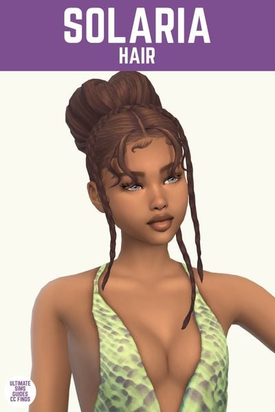 Solaria is an up-do hairstyle with a fun set of face framing pieces and edges. It has a braid coming down which adds a lot to the look without being too overwhelming.