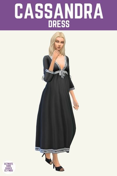 This dress comes from a pack that’s inspired by all the women from Pleasantview in The Sims 2 and this is Cassandra Goth. This dress is so beautiful and could even be used as a fancy nightgown.