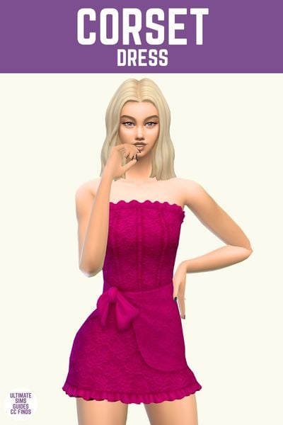 The Corset dress is a gorgeous mini-dress for your sims. It comes in solid colours in a lace texture or fun florals like this one. I like the ruffles around the edges so much!