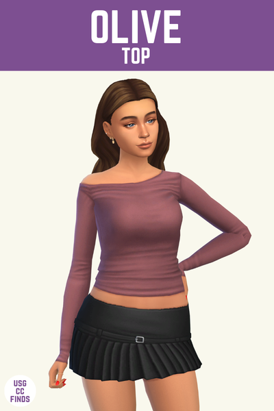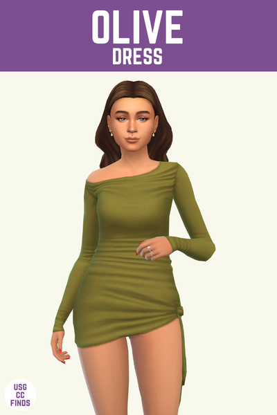The Olive dress takes the top and makes it a full look. The dress has a tied ball of fabric on one hip with strands hanging down. This dress won’t be for every sim, but the ones who wear it will look hot.