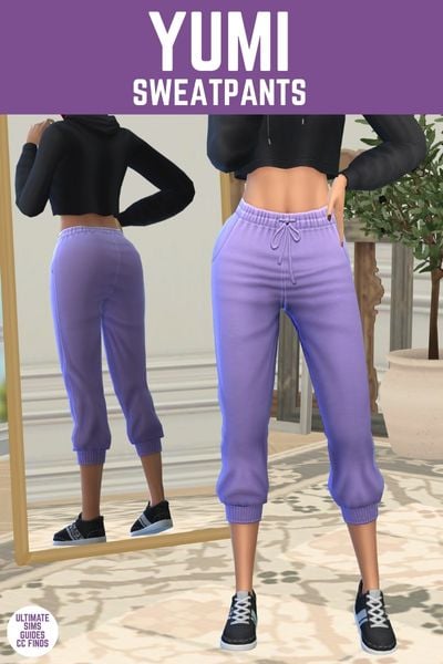 These sweatpants look so comfortable and that’s what your sims deserves! These come in great colours with neutrals like black and white but also fun bright ones like pink and purple.
