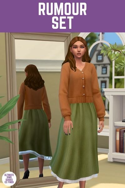 This outfit is one of my favourites right now, the look of the midi-dress with a beautiful coat on top feels so classic and beautiful. It’s going to make your sims look immediately fabulous.