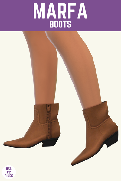 These boots are a great shorter boot with a nice thick heel that looks great in the fall on my sims. They look great paired with wide leg pants.