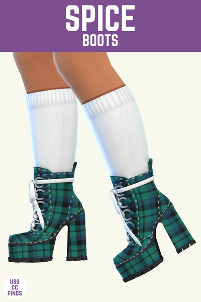 These boots look so good when sims are wearing fish net tights and a cute plaid skirt. It’s just a vibe, and my sims who have tattoos look so good in these boots.
