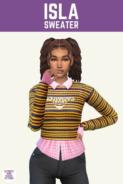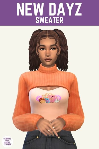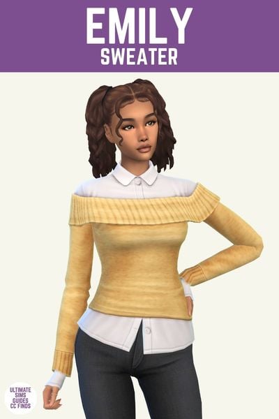 This sweater comes from a set of custom content that’s designed for teenagers and this feels Y2K high school to me. I love the off the shoulder sweater look, it feels so cute and effortless.