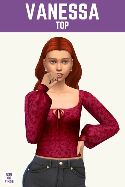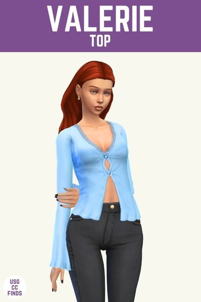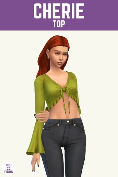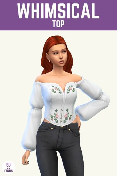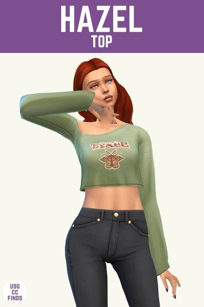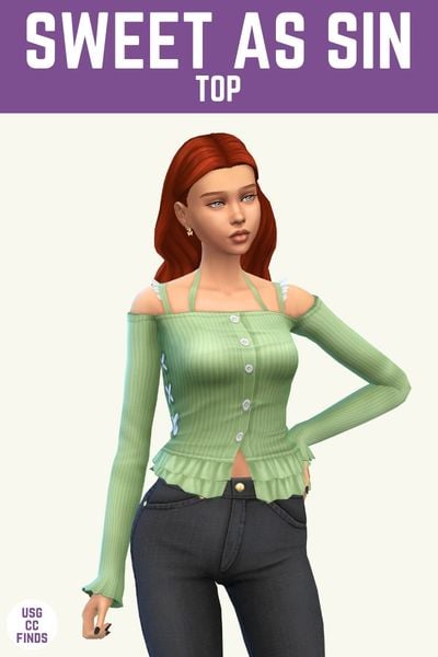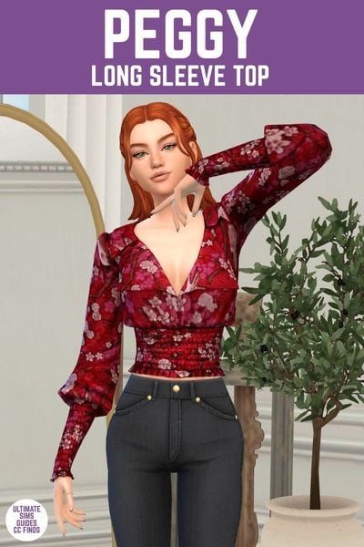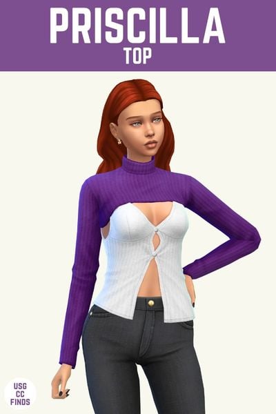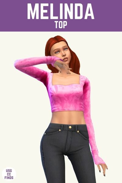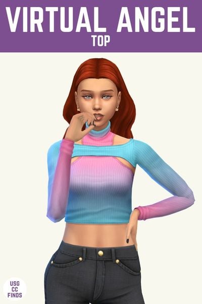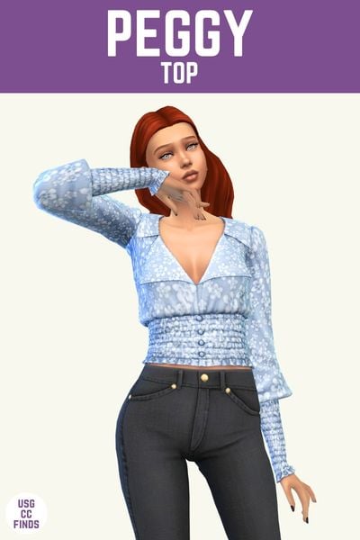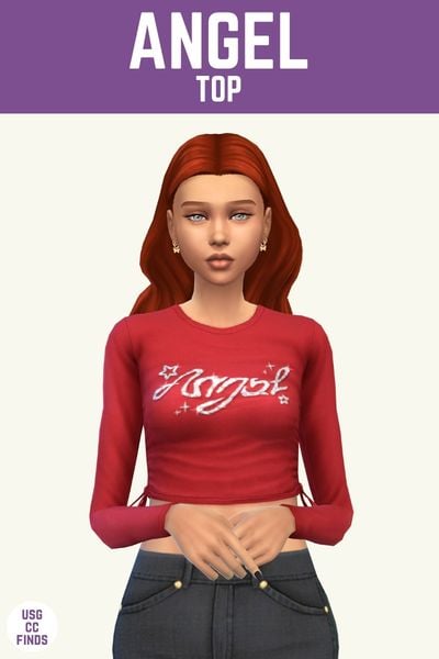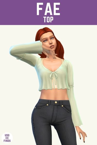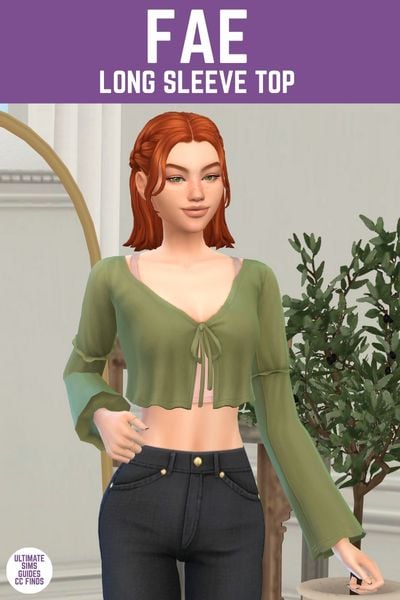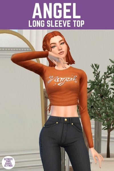 Angel is a really cute option for a sims 4 cc long sleeve top. It has a cropped length and gather fabric rouching on either side.