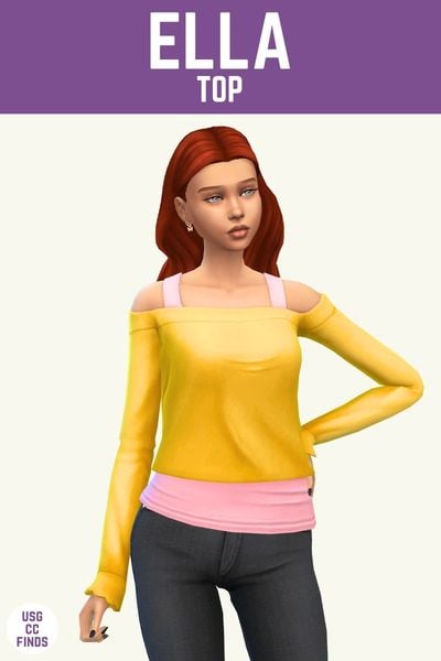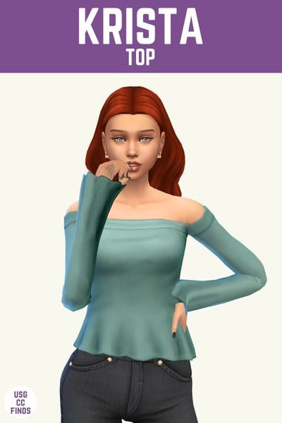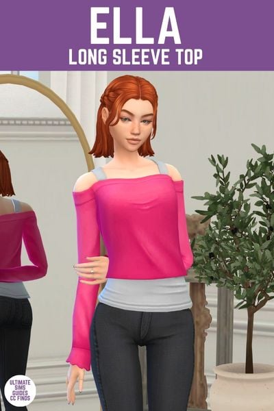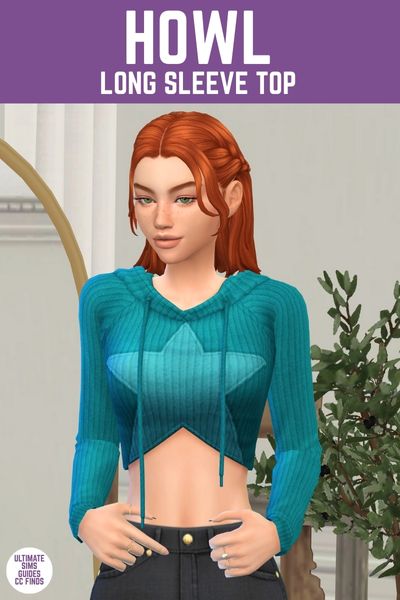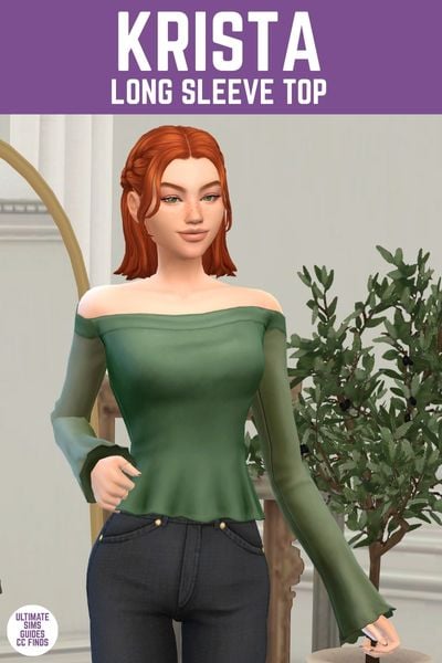 The top has long sleeves and an off the shoulder vibe and shows off the stomach giving your sims a great look!