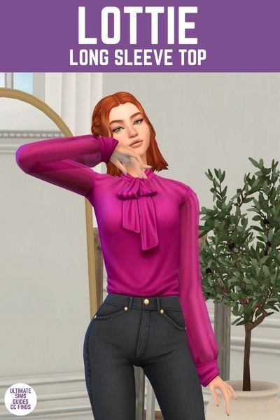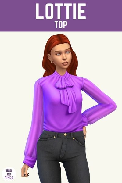 If you have a sim who is a powerful business woman, you need this top for their everyday look. It has a gorgeous texture and long sleeves but the shine for me is that tied bow around the neck!