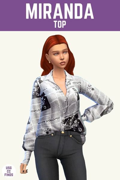 The Miranda shirt is a classic button down top for your sims but with a really cool wrist that goes skinny and extends onto the hands.