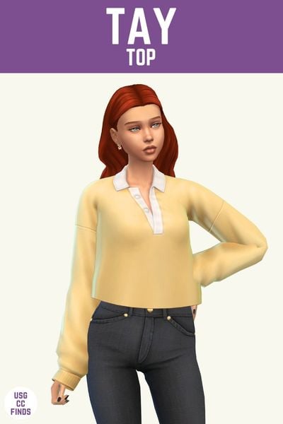 I love finding great casual clothes for my sims and this is such a great top because your sim can wear it with PJs for a comfortable look or dress it up with a skirt and accessories and it looks good either way.