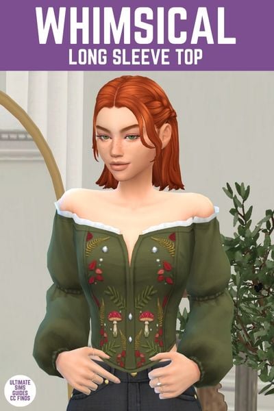 If you want a full coverage top for your sims this is a great option. Aster has a high neckline and full length puff sleeves with a cute little cuff.