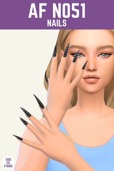 I’m obsessed with these nails but would be so worried about losing studs IRL so I give them to my sims! These have a really long pointed look covered in studs and they just look so gorgeous.