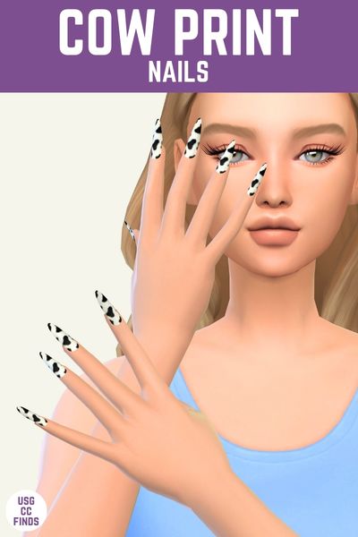 I love a fun nail and if your sim is riding around on horses and raising cows, these are the best. These have multiple swatches with different styles of cow print.