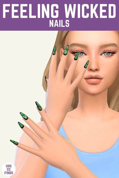 Wicked is a phenomenon and if you want your sim to have Elphaba nails, these are the ones. They have a fun look to them and your sims will definitely be feeling wicked.