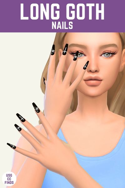 Finding custom content for goth sims is so much fun and these long goth nails hit the spot. They have crosses and stars on them and look really cool.