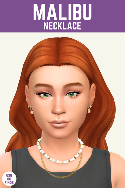 This pearl necklace is such a vibe for your sims when they have a bit of skin showing on their chest. This has two layers of metal and pearl and a cute dangling pearl further down on the chest, how cute!