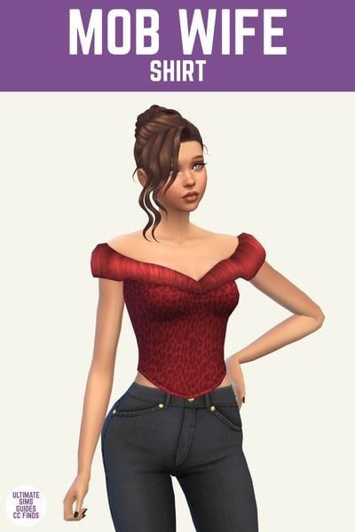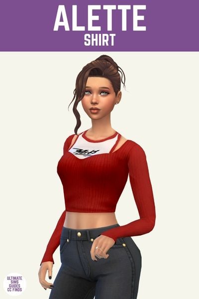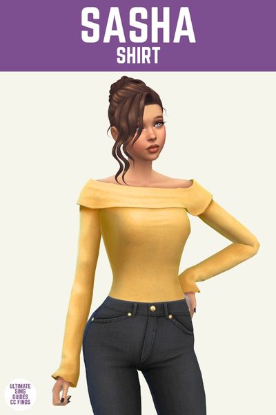 The Sasha shirt is a really beautiful thin sweater for your sims to wear. I’m obsessed with the off the shoulder folded look, it feels very early 2000s and I’m loving that. It tucks in really well and looks great with jeans, just like Regina George!