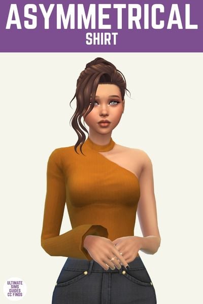 This asymmetrical shirt is a very fun option for your sims as the weather gets colder but isn’t cold enough to need two sleeves. It comes in great solid colours that look really beautiful on your sims.