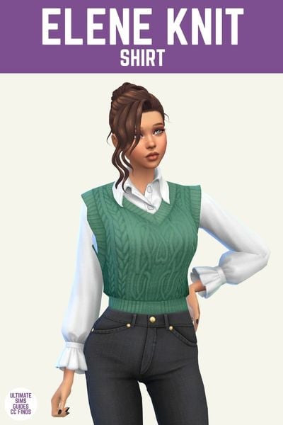 This is such a great knit vest and it looks so darn cute on my sims. I love the way it’s layered with a button down with funky sleeves and there’s even a dress that matches the same style.