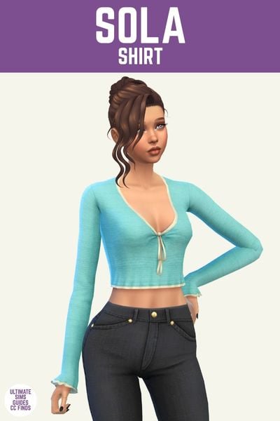 This Colette Shirt is a fun one if you want your sims to show a bit of skin. I really love the wideness of the neckline on this shirt, plus the way it is tied looks so interesting to me. You can wear this with skirts or jeans and it’ll look good no matter what.