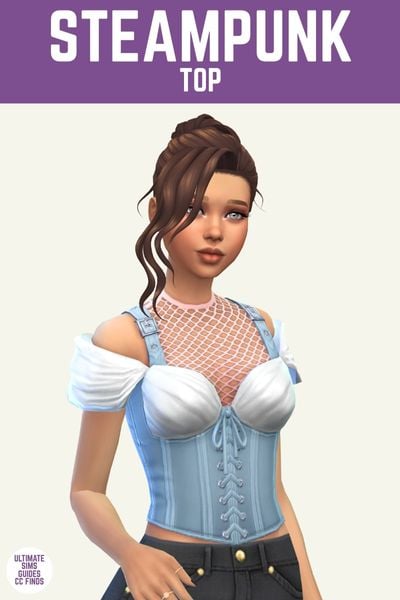 The steampunk shirt is a really funky and unique look for your sims. It has so many details like a fish net on the chest, a corset around the body and an interesting drop shoulder.