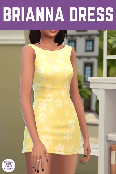 The Brianna Dress is a really fun option because of that high neck. I absolutely love that neckline and think it looks gorgeous on so many sims. Plus, it makes your sim’s necklaces look cooler when they’re on top of the dress.
