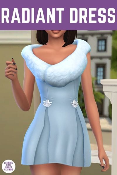 The Radiant Dress is so much fun for a Christmas party for your sims. This dress has fun pleats with broaches on each and a bunch of fur fabric to really make it look so much more fun.