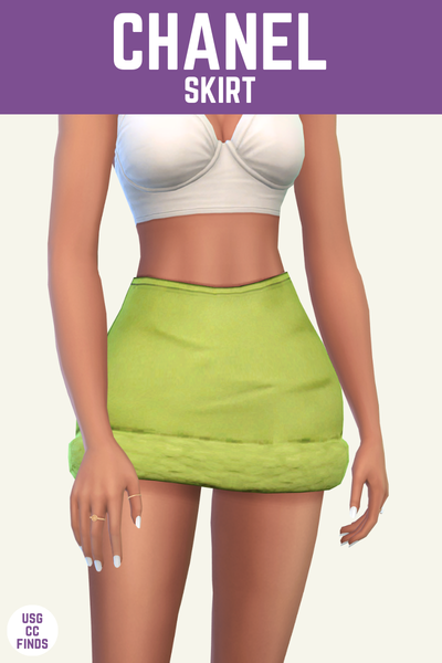 The Chanel skirt is incredible with a fur lining on the bottom. The best part is that there is a matching shirt so you can make a sim wearing this as a two-piece set and they are going to look so cute.